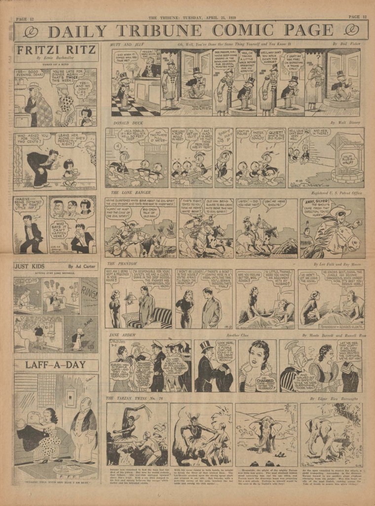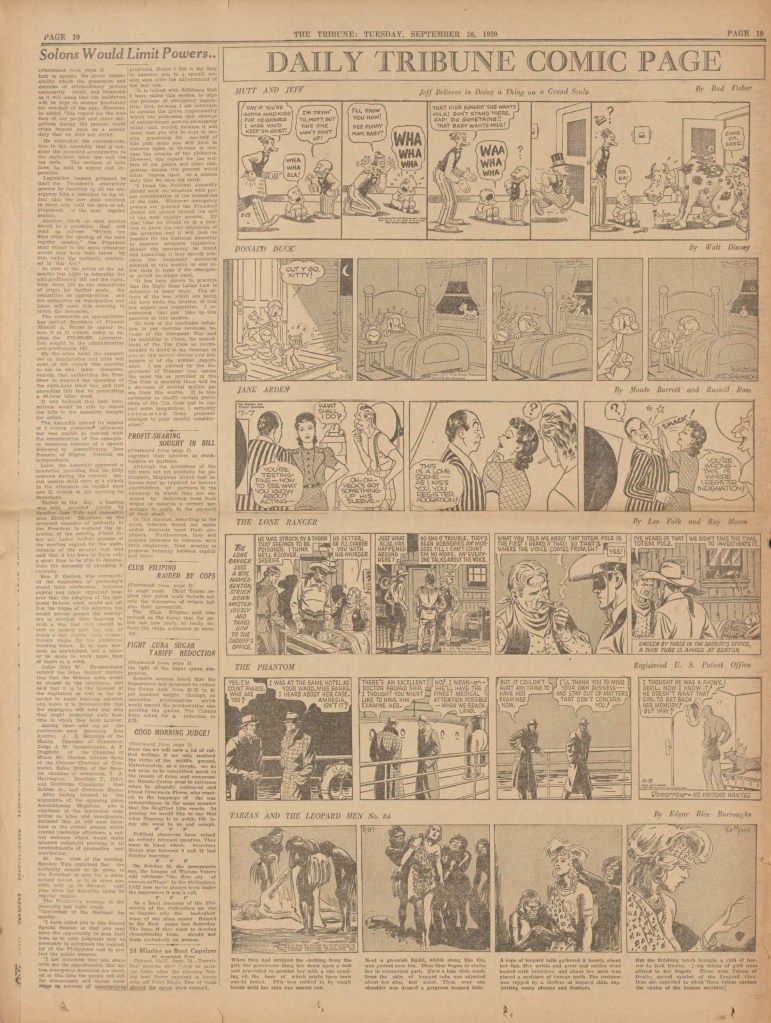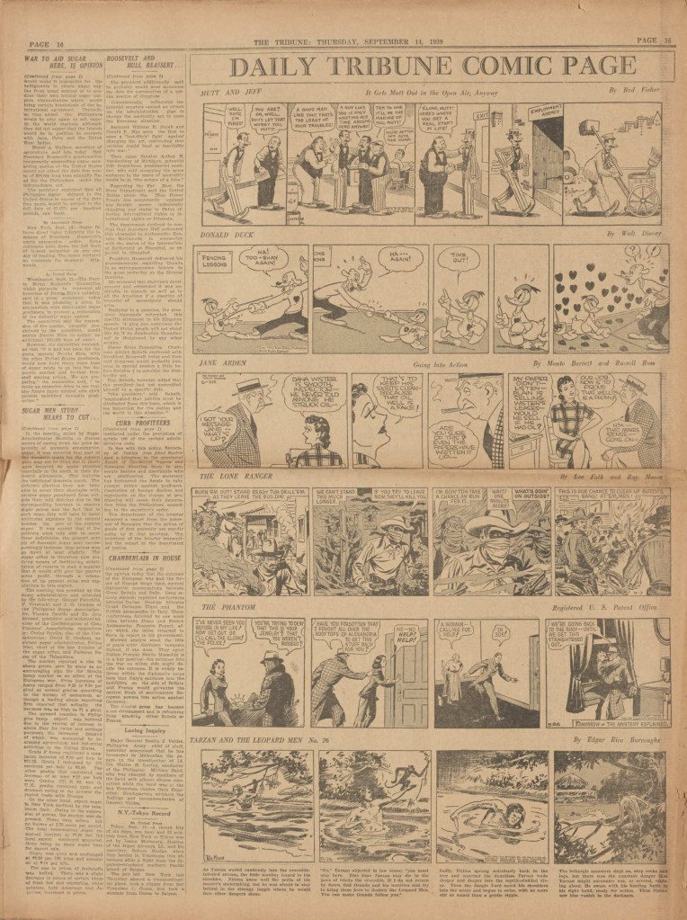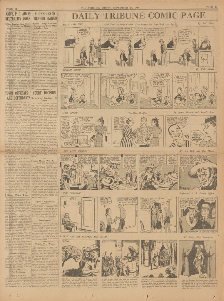 The Phantom comic strip was published on a daily basis, including on weekends (which was printed in full color), from approximately April 1939, until January 1942. 7 Daily stories and 7 Sunday stories were printed over this time.