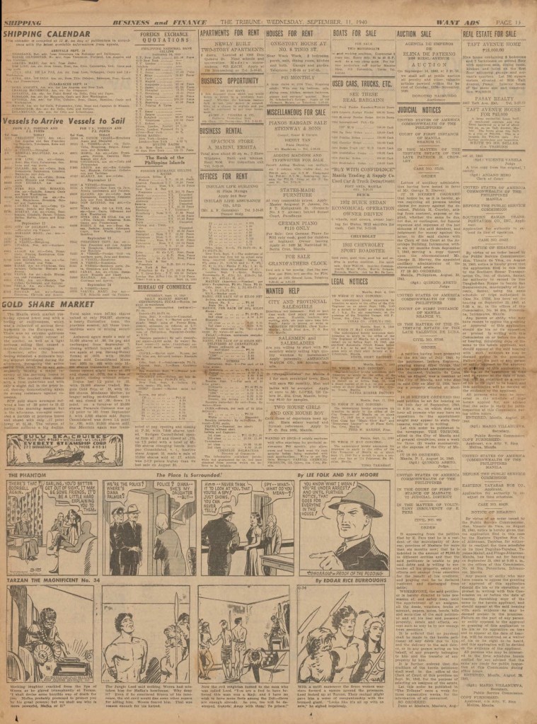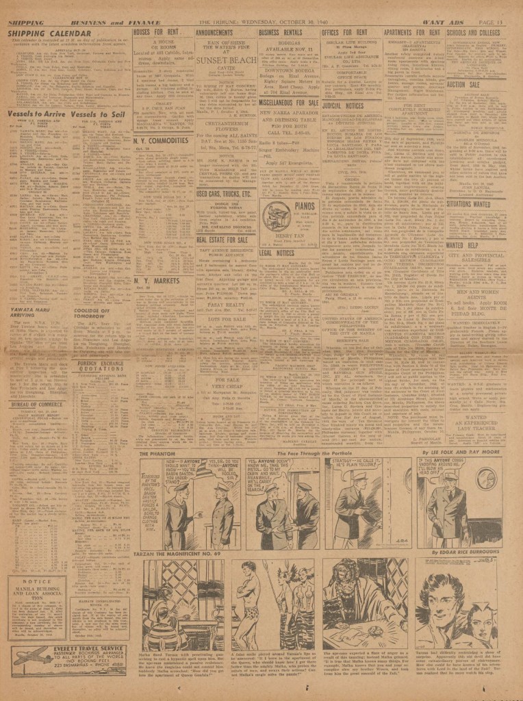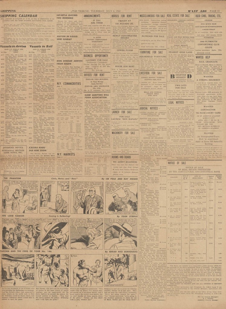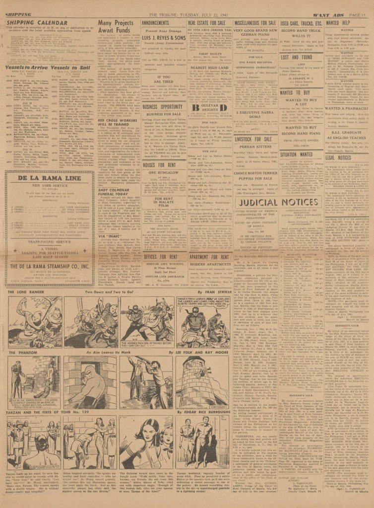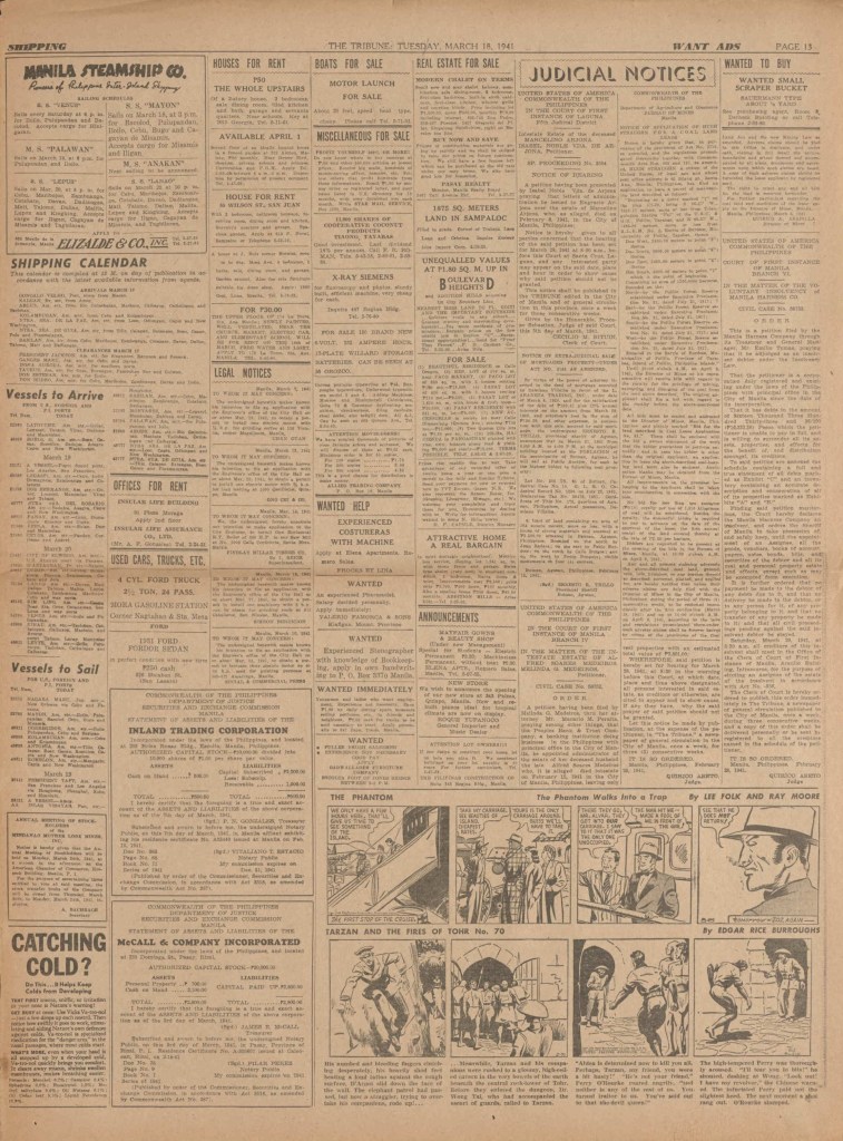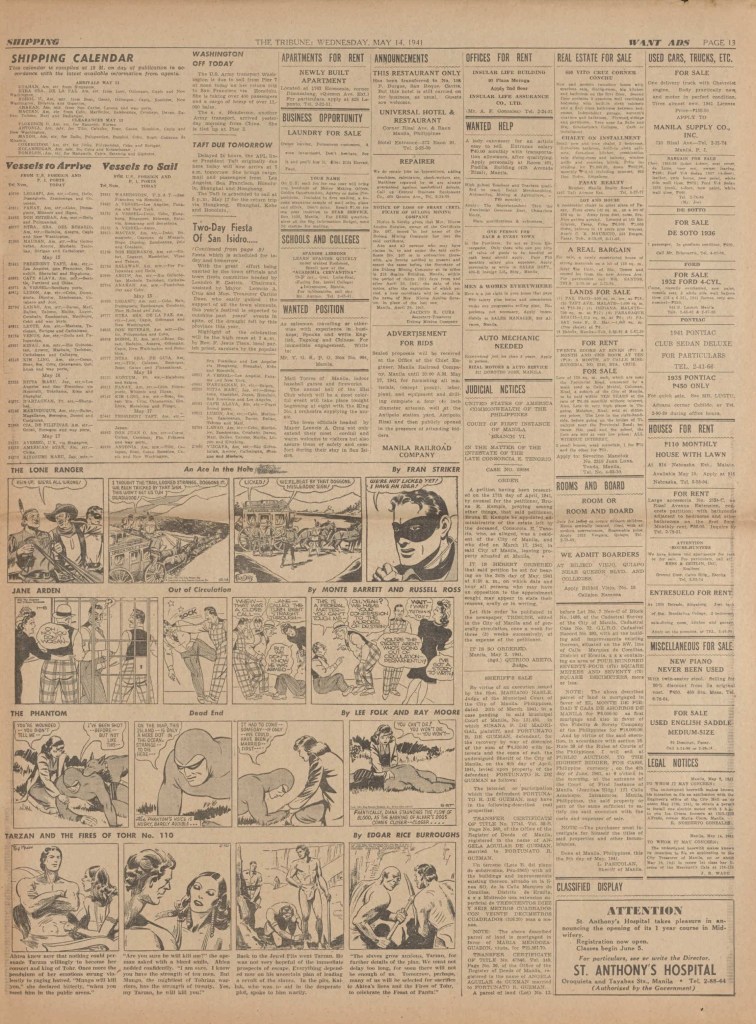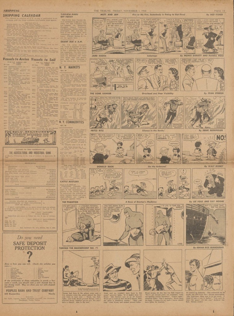 See following examples of pages that were printed containing the Phantom daily comic strips.