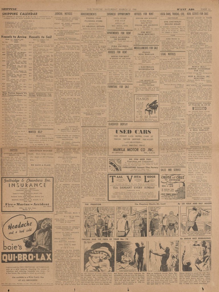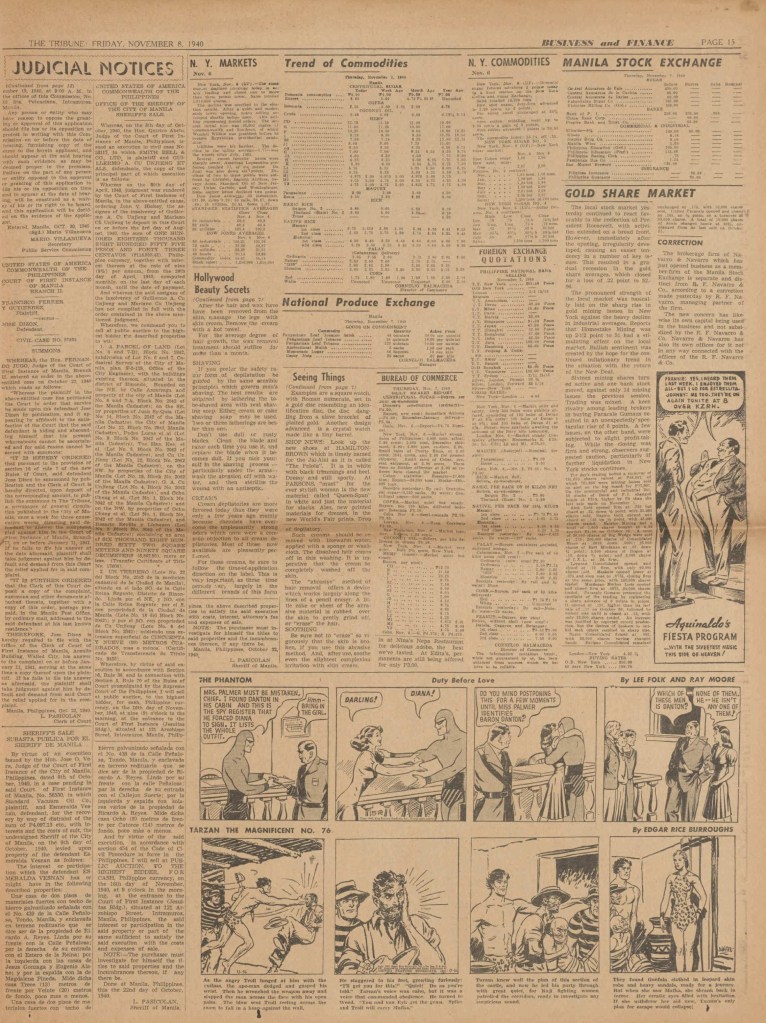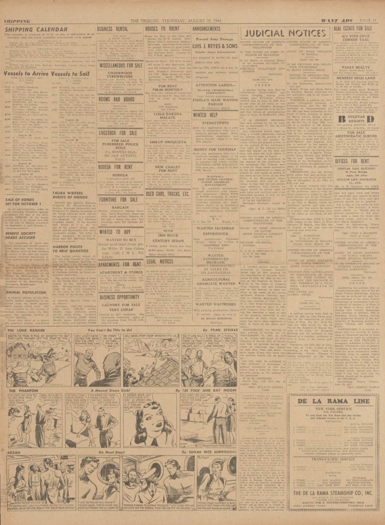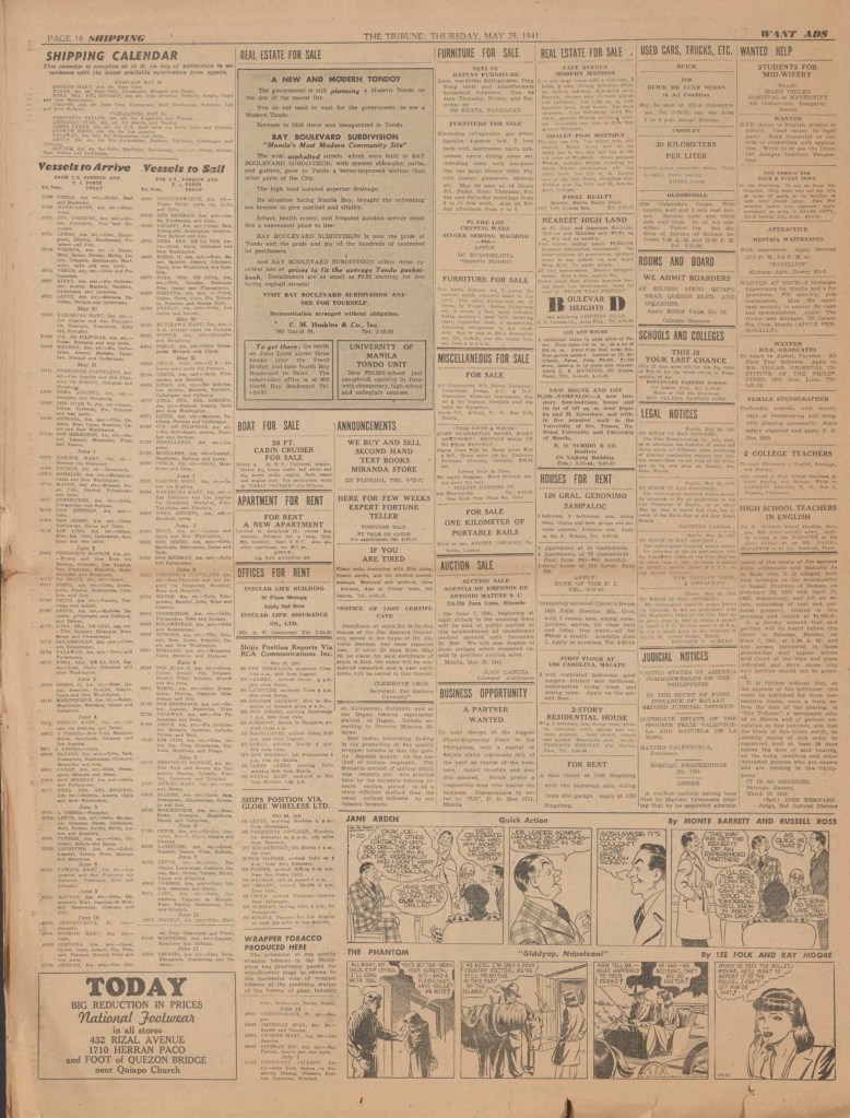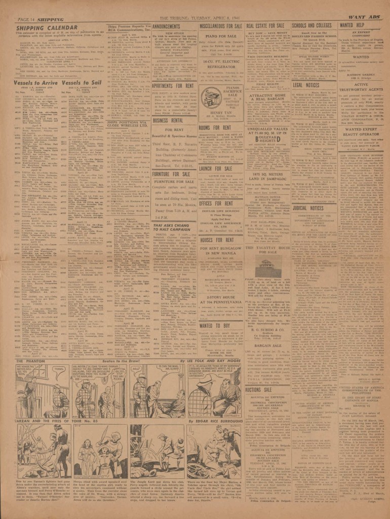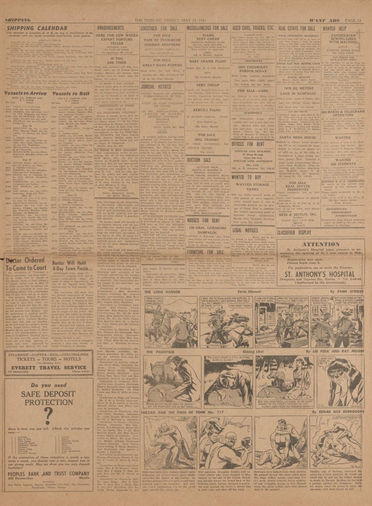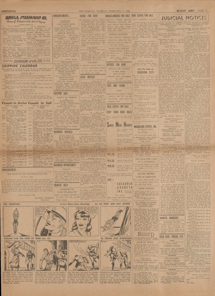 See following examples of pages that were printed containing the Phantom daily comic strips.