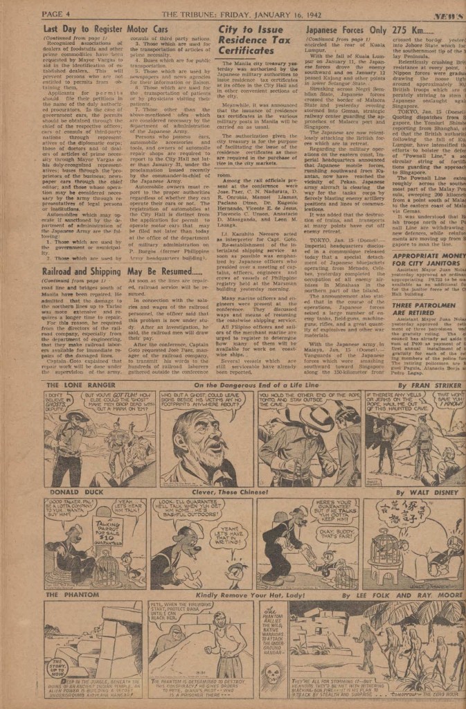 The newspaper was printed in black and white on a daily basis, in English text and was believed to have the largest circulation at the time within the Asia region. See below an example of a daily edition.