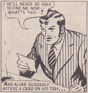Probably because the title, The Game of Alvar lacked sales appeal, the story was re-titled The Phantom Versus The Gun Runners, not at all a bad choice, because the Phantom becomes embroiled with a gang of munitions’ smugglers headed by the cowardly, mysterious and evil Alvar.