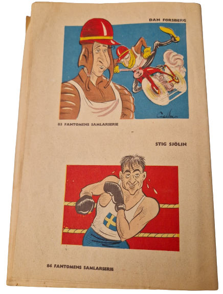 Fantomen comic book edition number 26, published by Serieförlaget in Sweden in 1952 contains an interesting advertisement for the reader to subscribe to a variety of comic books. The front and rear covers of this edition can be seen below, with the Phantom not present on the outside covers.