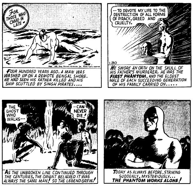 The Phantom, the first costumed, fictional superhero, known as “The Ghost Who Walks.”