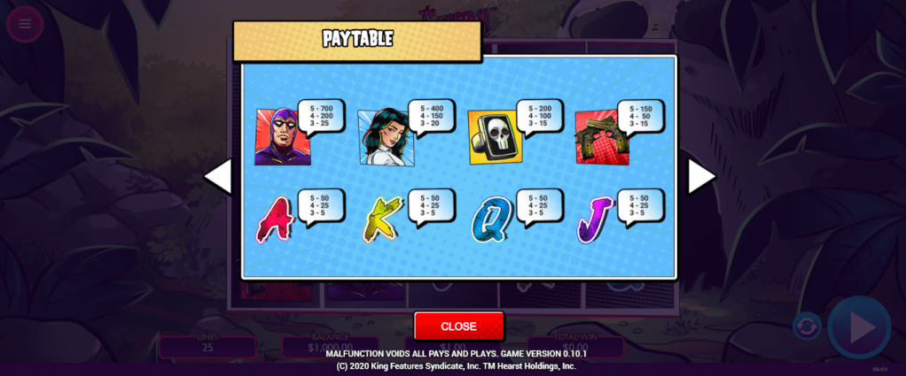 Live an incredible adventure with the masked hero and win prizes! This dynamic and captivating slot is inspired on the adventures of the famous comic character, the Phantom. A game filled with features, bonuses and an awesome jackpot ready to be won!