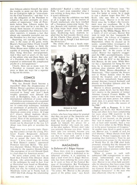 The article found within this edition is titled, ‘The Modern Mona Lisa’, on page 41. The article features an image of Lee Falk at the exhibition, alongside French Film Director, Alain Resnais.