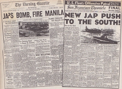 The inclusion of these graphics is not in any way intended to stir up emotions. The reproduced front pages are part of world history and simply help paint a broader picture of what was happening in the Pacific area during World War Two.