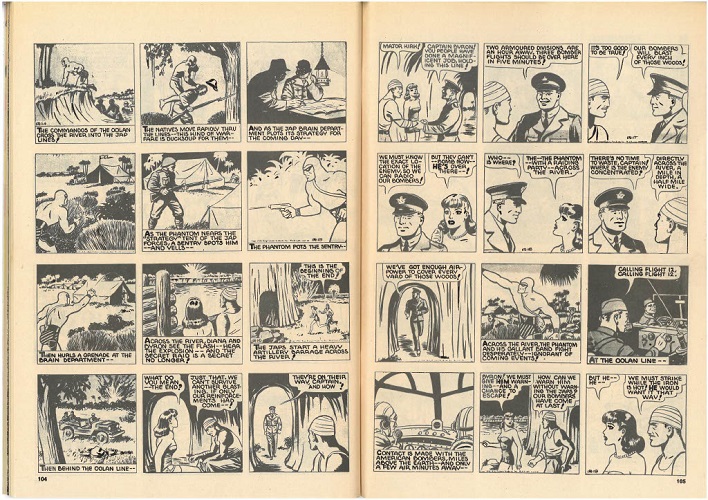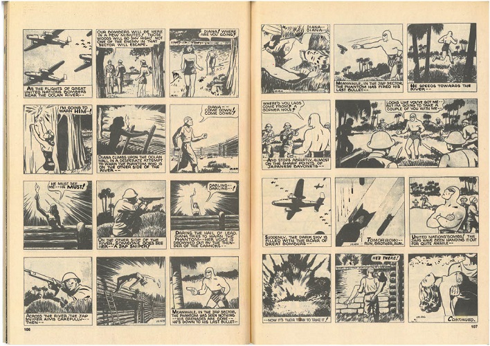 After World War Two, when the comic book industry boomed, Frew’s publishing history of The Phantom Goes To War story is best described as being ultra-confusing!