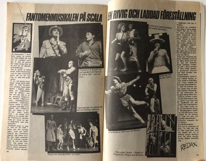 The Phantom Musical (known in Sweden as ‘Äventyrsmusikalen Fantomen’ – ‘The Adventure Musical – The Phantom’), was an on-stage musical which played in Stockholm, Sweden. It’s first on-stage premier was on the 22nd of February, 1985.