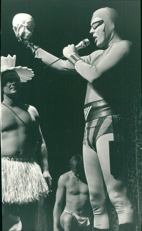 Below we see a press photo of Urban Wrethagen in his Phantom costume and Veronica Björnstrand playing the part of Diana Palmer.