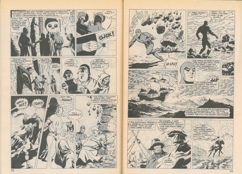 Wearing the costume based on the Demon God, Christopher became the first of what would later be known as The Phantom. When he died, his son took over for him, and when the 2nd Phantom died, his son took over. And so it would go on through the centuries, causing people to believe that the Phantom was immortal, giving him nicknames as “The Ghost Who Walks” and “The Man Who Cannot Die”.