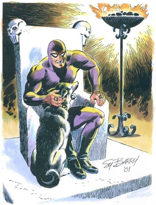 A depiction of the Skull Throne is presented on the left, as illustrated by Sy Barry, featuring the Phantom accompanied by Devil.