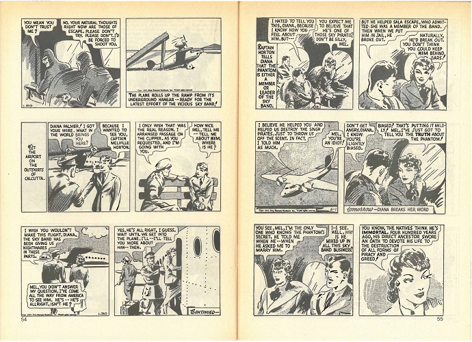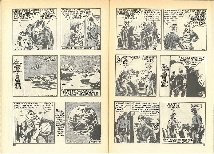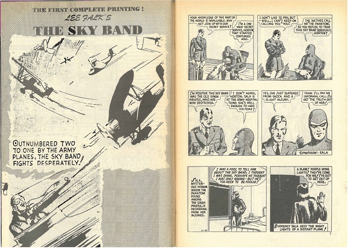 The Sky Band is a classic Lee Falk treatment from beginning to end and like all of Lee’s Phantom stories in the 1936-43 period especially is destined to be hailed as long as comics are produced, as a definitive example of adventure writing and illustration at its best.