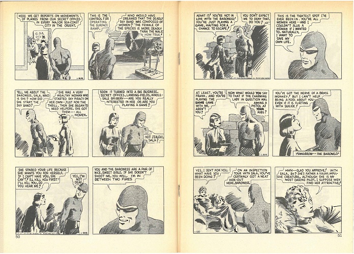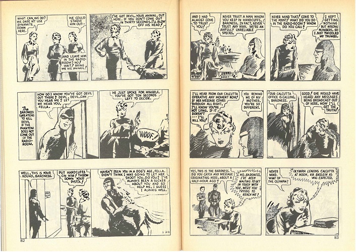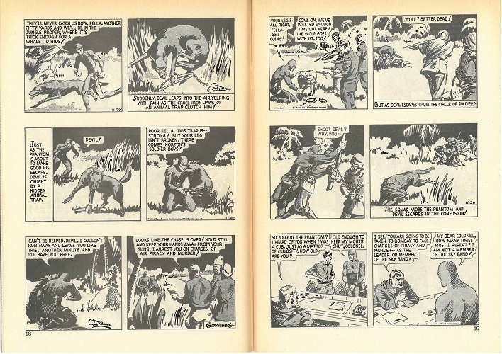 Devil is given another important role and for the first time we see the Phantom’s skull throne, and are briefly reintroduced to the Skull Cave, first depicted in The Singh Brotherhood. Sala was to make a comeback in the 1941-42 story The Return of the Sky Band but like Captain Horton, was destined to fade into obscurity.