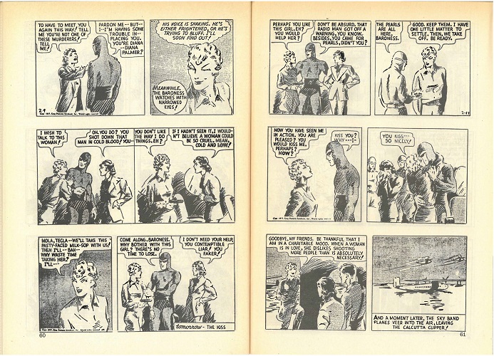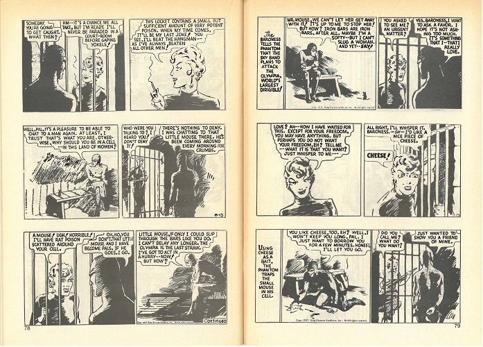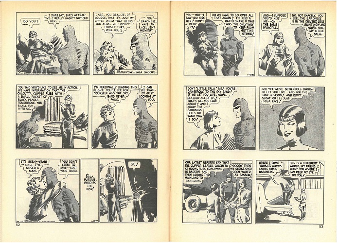 The Sky Band was a fascinating concept because all-female gangs were virtually non-existent in comics and popular fiction at the time! That Lee Falk was determined to break new ground in comics from the outset was doubtlessly one reason for the decision to follow this unusual line but another was doubtless the fact that he recognized artist Ray Moore’s unique gift for drawing beautiful women.