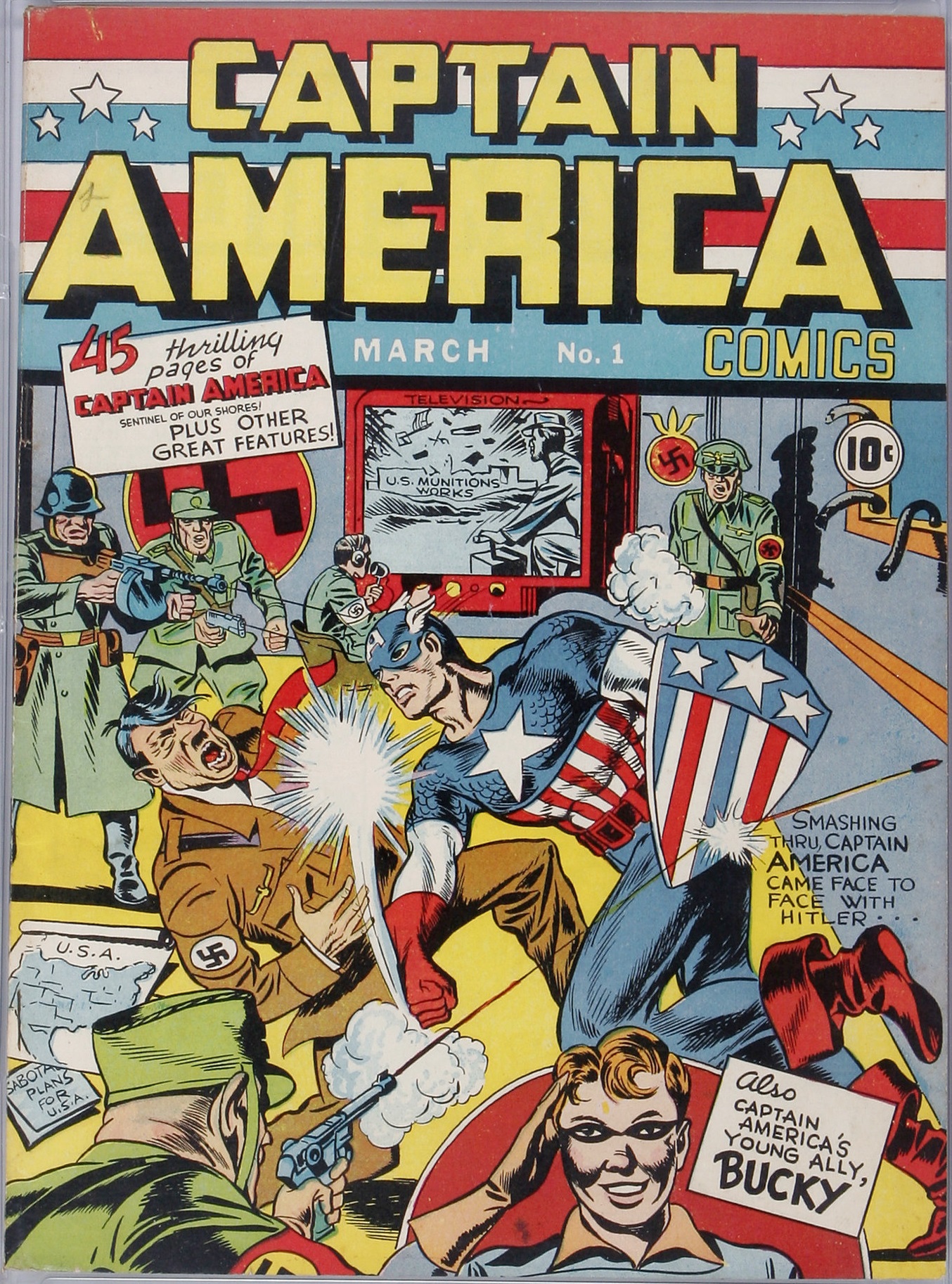 Created by artists Joe Simon and Jack Kirby, this star-spangled superhero debuted in Captain America Comics #1, cover-dated Mar 1941. Cap’s signature round shield (inset) replaced the triangular version in issue #2.