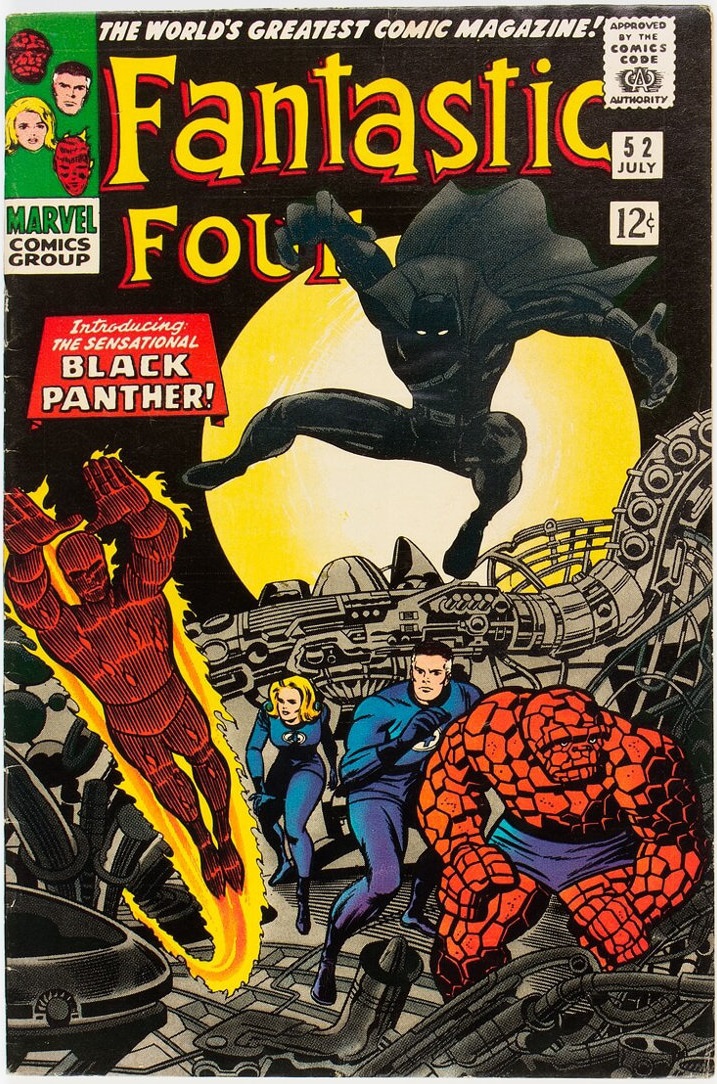 Black Panther was created by Stan Lee and Jack Kirby, first appearing in Fantastic Four #52 July 1966. Black Panther’s real name is T’Challa, king and protector of the fictional African nation of Wakanda.