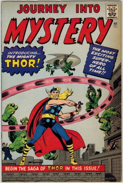 Thor Odinson is a fictional superhero appearing in American comic books published by Marvel Comics. The character, which is based on the Norse deity of the same name, is the Asgardian god of thunder who possesses an enchanted hammer. Thor first appeared in Journey into Mystery #83 in August 1962 and was created by Jack Kirby, Stan Lee and Larry Lieber.
