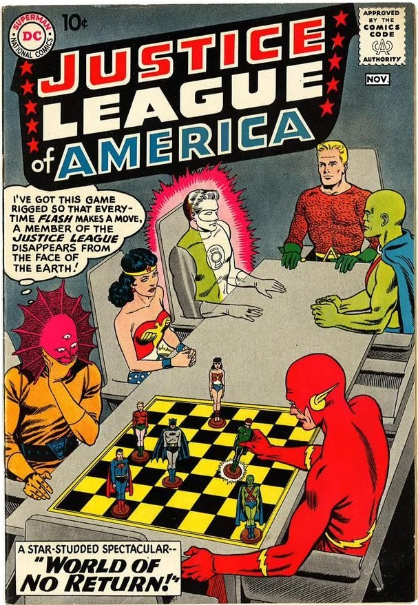 Also known as the Justice League of America (JLA), this supergroup of DC stars debuted in Oct–Nov 1960. Batman and Superman, although part of the original line-up, seldom appeared in the group’s adventures, while Martian Manhunter (below, far right) ended his initial stint with the JLA in 1968. The quintet below appeared on the cover of their first issue.