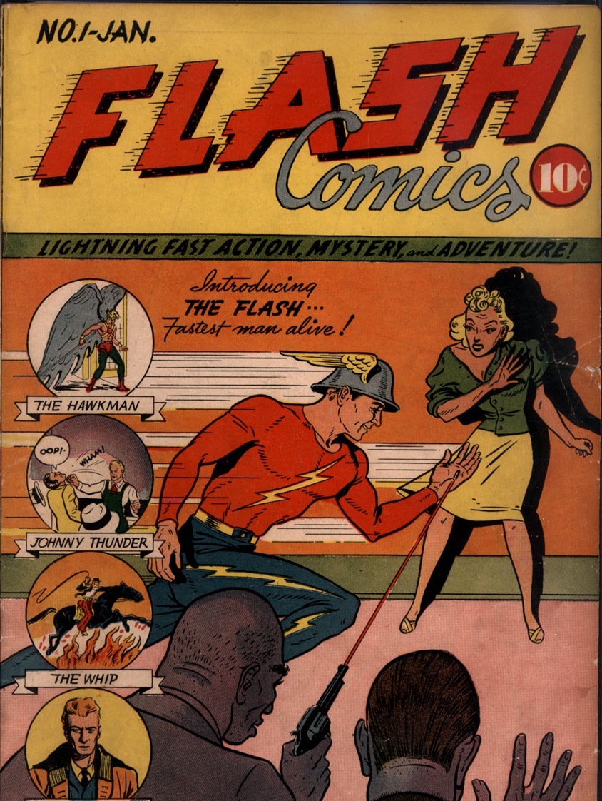 Created by artist Harry Lampert and writer Gardner Fox, the “Scarlet Speedster” originally appeared in Flash Comics #1 (cover-dated Jan 1940). Initially, his alter ego was Jay Garrick, although the character has been through several incarnations.