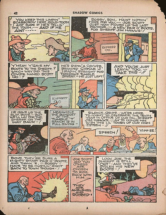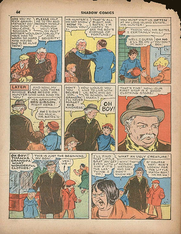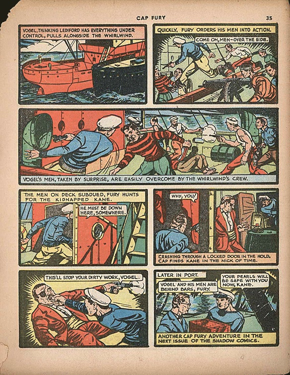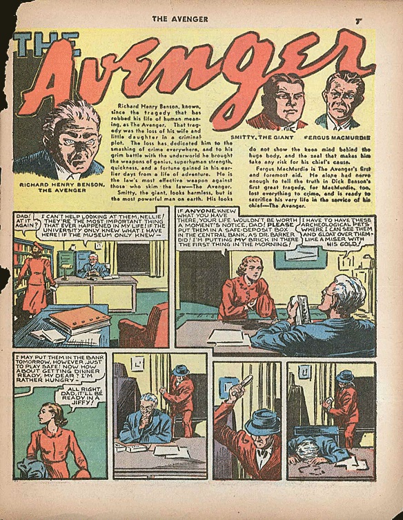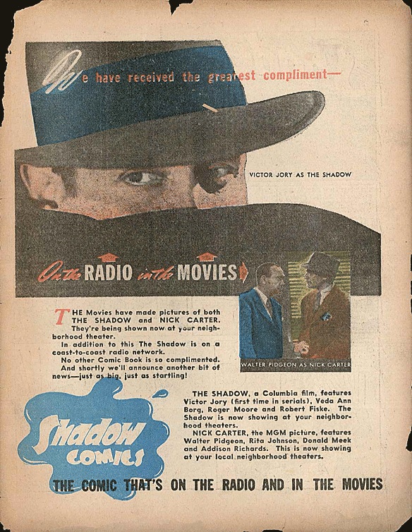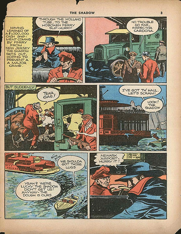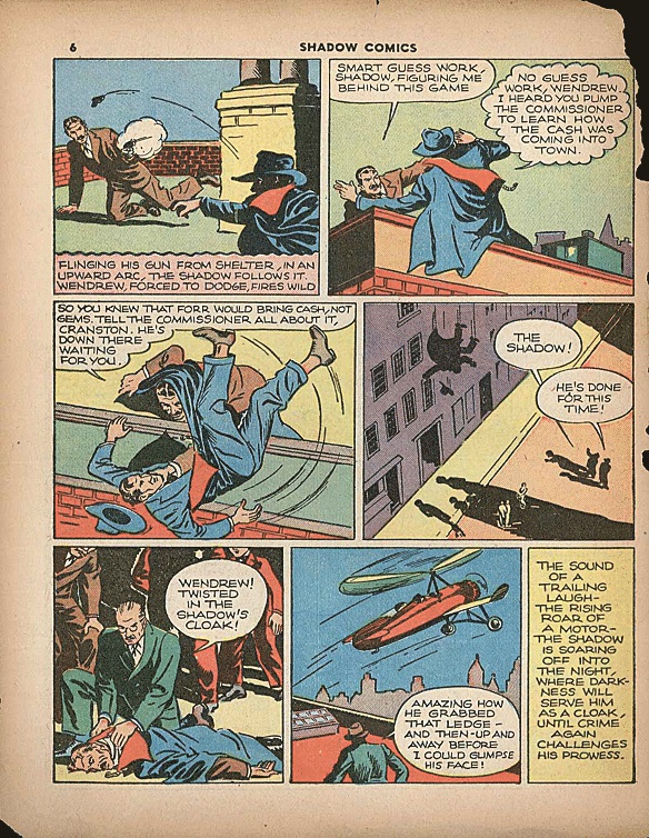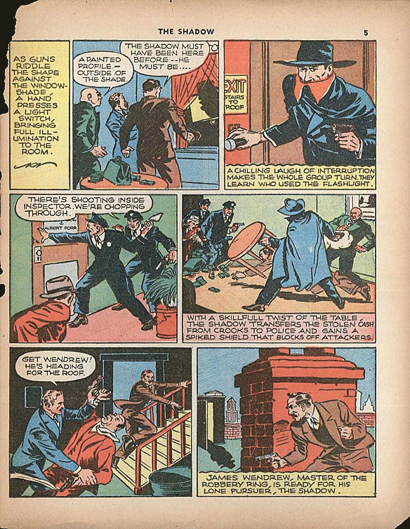 The Shadow has been adapted for comics several times during his long history; his first comics appearance was on June 17, 1940, as a syndicated daily newspaper comic strip offered through the Ledger Syndicate. The strip’s story continuity was written by Walter B. Gibson, with plot lines adapted from the Shadow pulps, and the strip was illustrated by Vernon Greene.