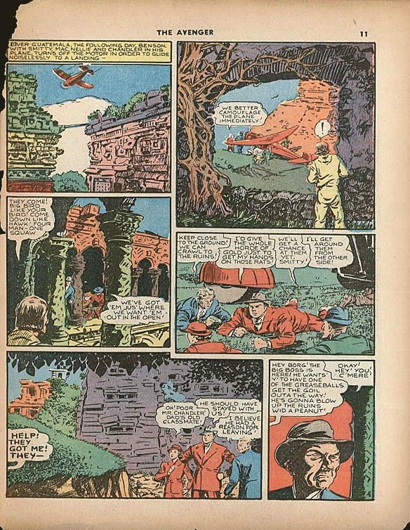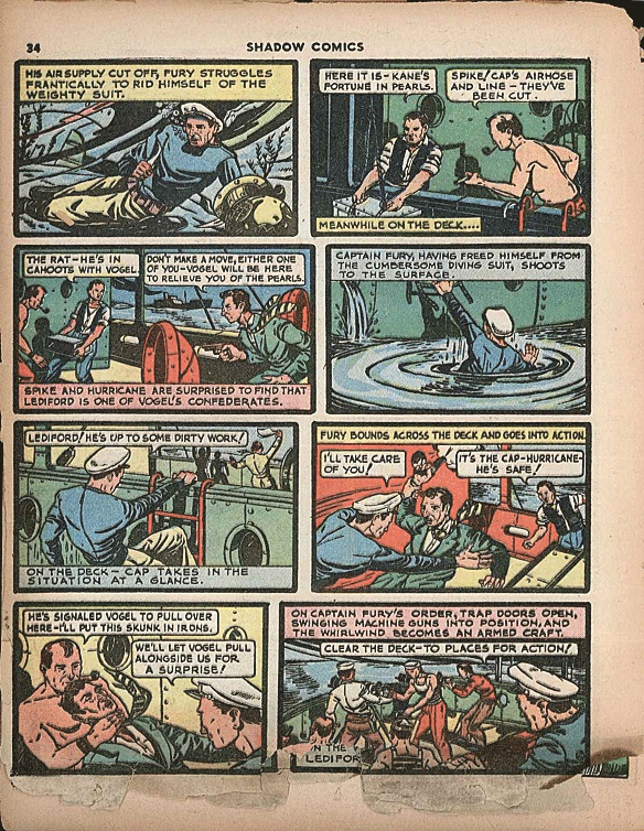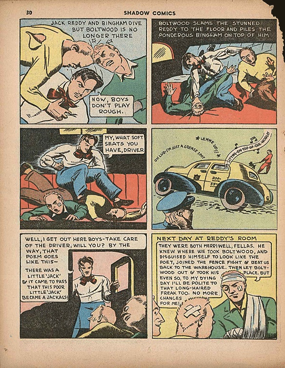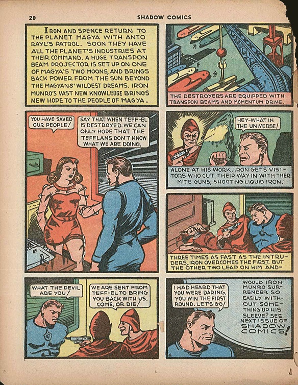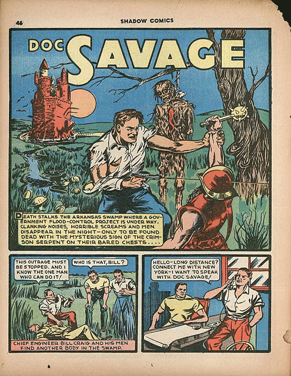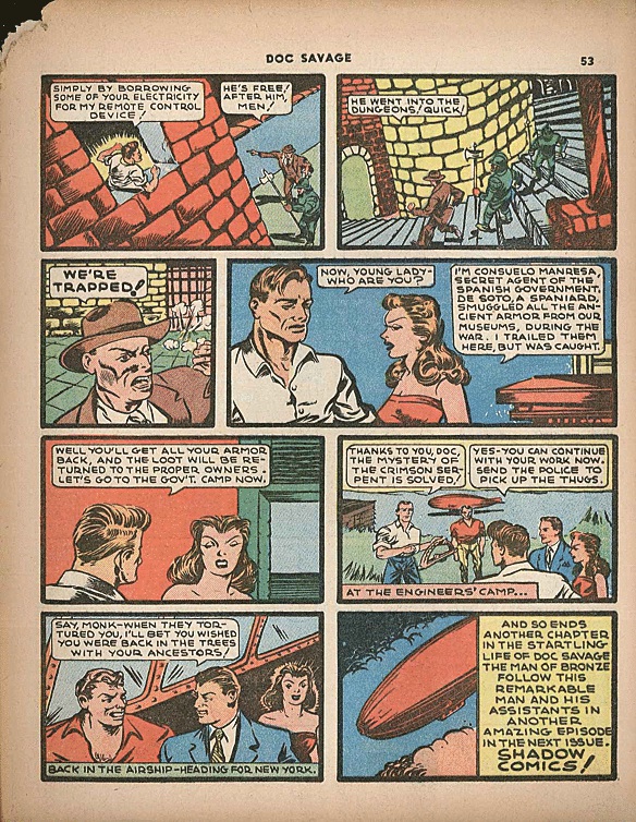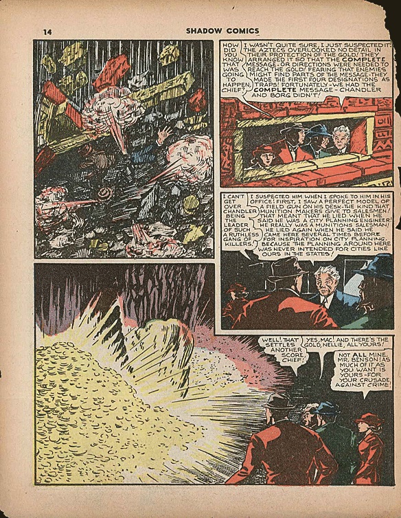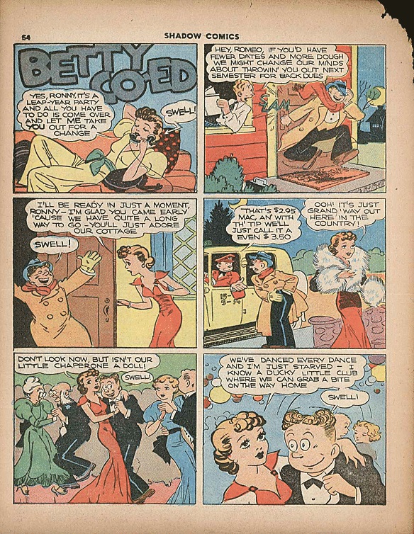 The Shadow has been adapted for comics several times during his long history; his first comics appearance was on June 17, 1940, as a syndicated daily newspaper comic strip offered through the Ledger Syndicate. The strip’s story continuity was written by Walter B. Gibson, with plot lines adapted from the Shadow pulps, and the strip was illustrated by Vernon Greene.